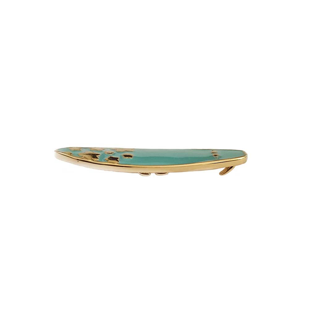 - Blom – Gold Base with Turquoise Enamel: This design features a radiant gold base adorned with vibrant turquoise enamel and intricate gold Blóm accents. It evokes the shimmering beauty of sunlit waves and adds a touch of opulence to any accessory, whether it’s your eyewear, rings, or bracelets.