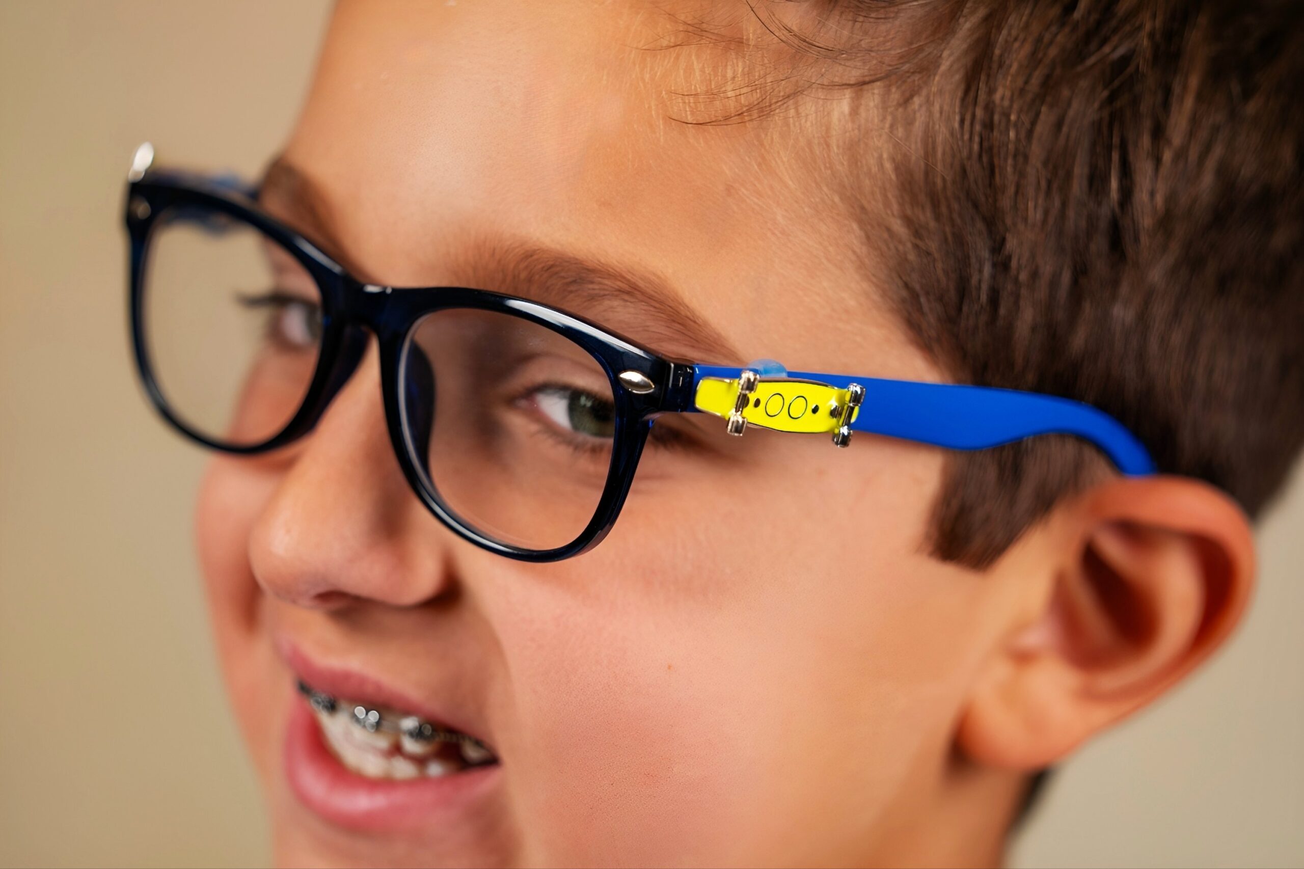 Each Kowy® includes 1 Kowy® Elos Set. Each set includes 4 mini silicone rings – one in each size – XS, S, M & L in clear (transparent) color. Designed to fit any frame; the Kowy should sit tight on the temples. Simply adjust the size of the mini rings to fit your frame thickness.
